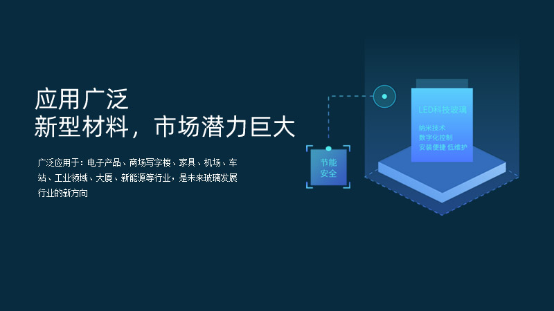 科技玻璃廣泛應(yīng)用于:電子產(chǎn)品、商場寫字樓、家具、機(jī)場、車站、工業(yè)領(lǐng)域、大廈、新能源等行業(yè),是未來玻璃發(fā)展行業(yè)的新方向。